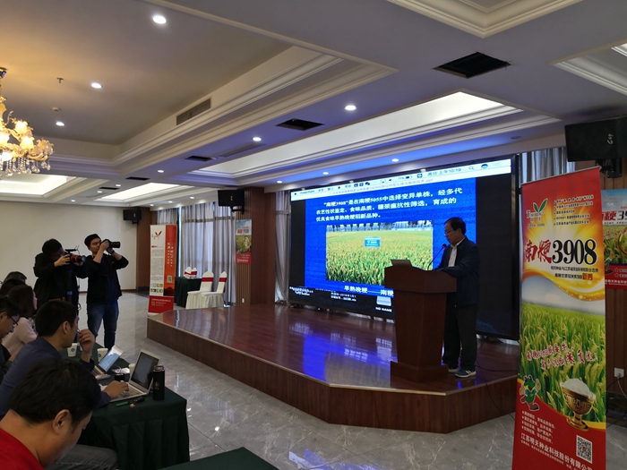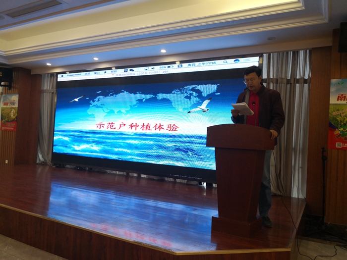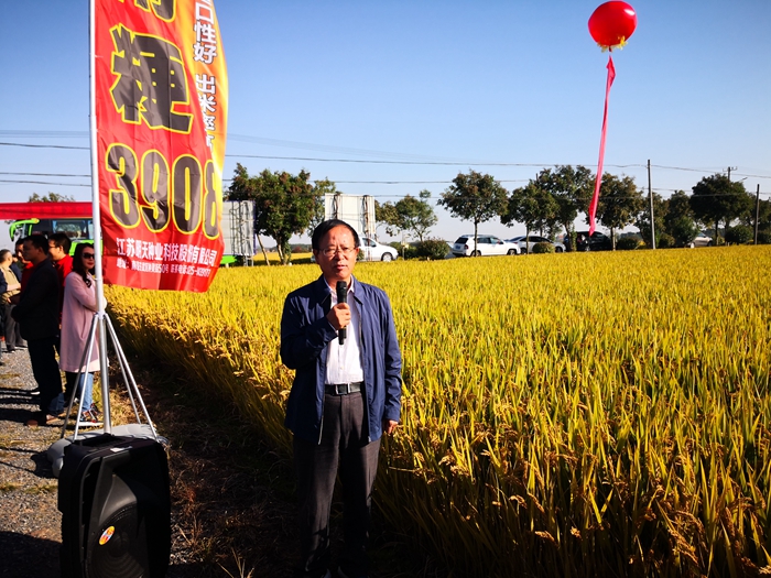 楊地龍副總經理向大家介紹“南粳3908”兩年來在各地示范種植的優異表現;各地的示范種植代表也踴躍發言,向大家分享了兩年來“南粳3908”在當地的表現,從喜悅的心情能看出大家對品種的認可和對品種的信心。