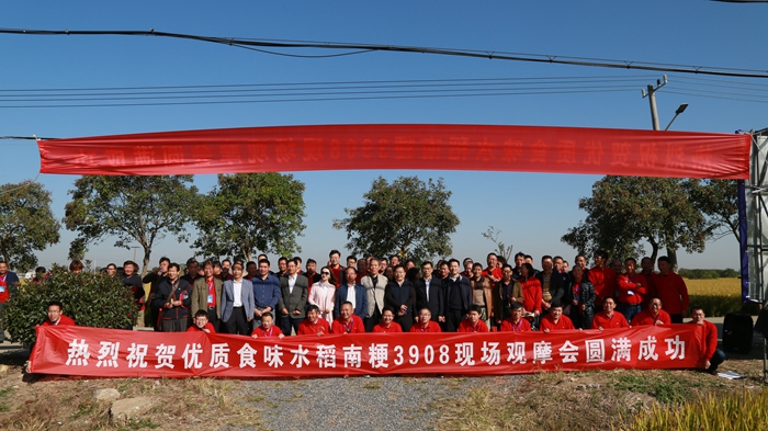 最后與會代表們合影留念,大家一起高呼“南粳3908、軟米最佳、先種先發”。
