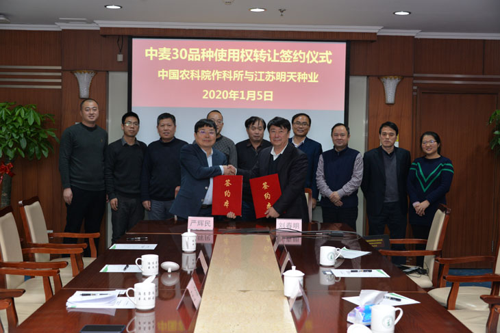 新年伊始,江蘇明天種業科技股份有限公司與中國農業科學院作物科學研究所就“中麥30”小麥新品系全國三大國審區域獨占實施許可簽約儀式在北京成功舉行。