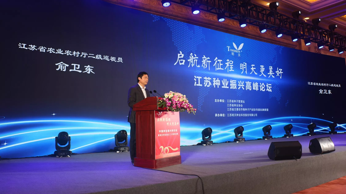 種子是農業的“芯片”,關系國家農業產業競爭力。11月20日下午,由江蘇省種子管理站、江蘇省種業協會、江蘇省主要農作物種子產業技術創新戰略聯盟主辦,江蘇明天種業科技股份有限公司承辦的“啟航新征程 明天更美好”江蘇種業振興高峰論壇暨明天種業成立20周年慶典在江蘇南京隆重舉行。出席本次會議的有中國工程院院士萬建民、中國水稻所所長、中國工程院院士胡培松、中國工程院院士張洪程、中國種子協會副會長兼秘書長蔣協新、中國種子協會副會長鄧光聯、江蘇省農業農村廳二級巡視員俞衛東、江蘇省農科院科學院院長易中懿、南京農業大學副校長丁艷鋒等專家領導,還有來自農業農村部門、科研院所、高等院校、種子企業的專家等300余名代表齊聚一堂,就“十四五”開局之年,江蘇種業如何打好“種業翻身仗”,實現江蘇種業振興進行交流研討。