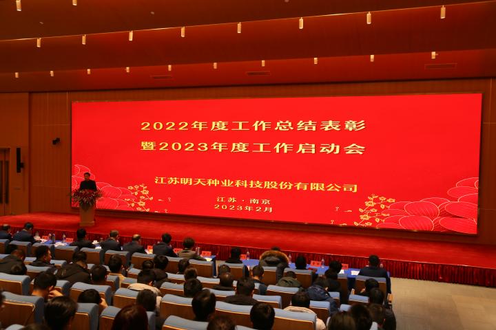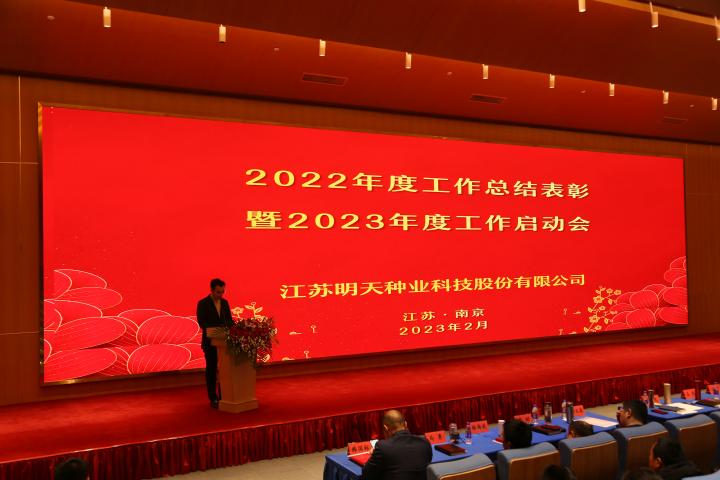 “律回春暉漸,萬象始更新”。在春暖花開,萬物復蘇的新年伊始,2月5日江蘇明天種業全體人員齊聚南京圣和文化交流中心隆重召開2022年度總結表彰暨2023年工作啟動大會。公司全體領導班子成員、2022年度先進和優秀員工代表及子公司員工等160余人參加了會議,會議由公司副總經理胡玉成主持。